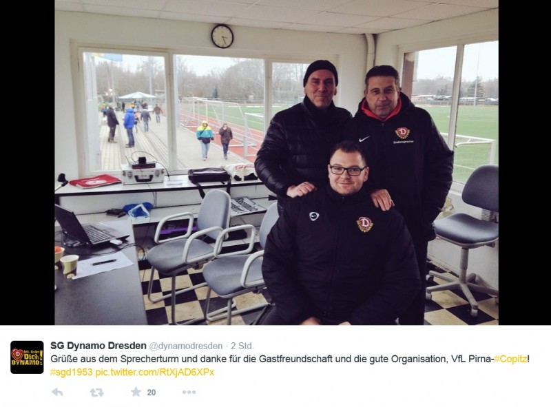 Auch über den Facebook-Liveticker des VfL Pirna-Copitz konnte die Testpartie verfolgt werden. Fotos, Kommentare, Analysen und Anekdoten informierten die Leser über das Spielgeschehen. Zum Abschluss der Berichterstattung stellte der VfL einen besonderen Beitrag als "Dankeschön!" online: